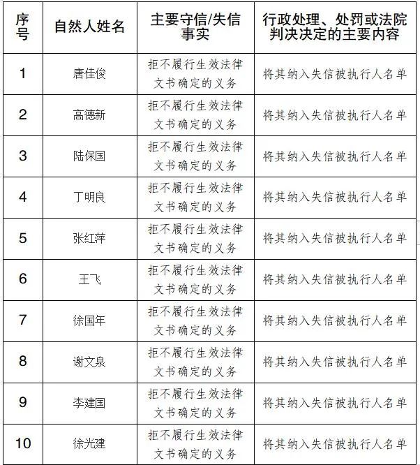 2022年第一季度失信自然人名单