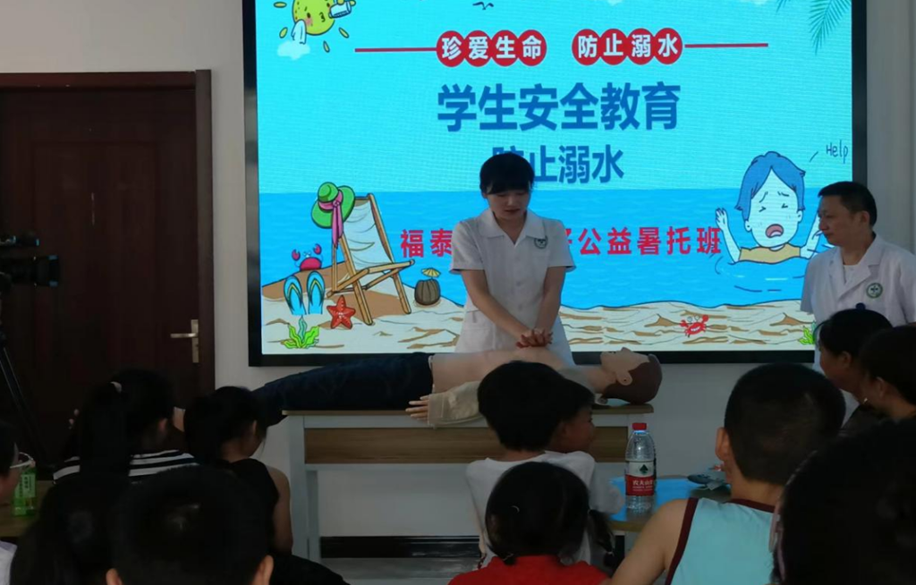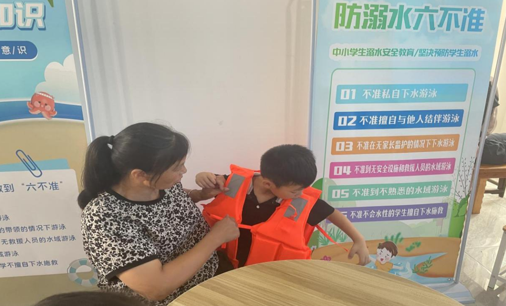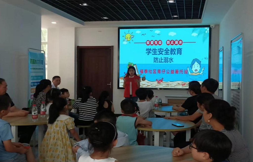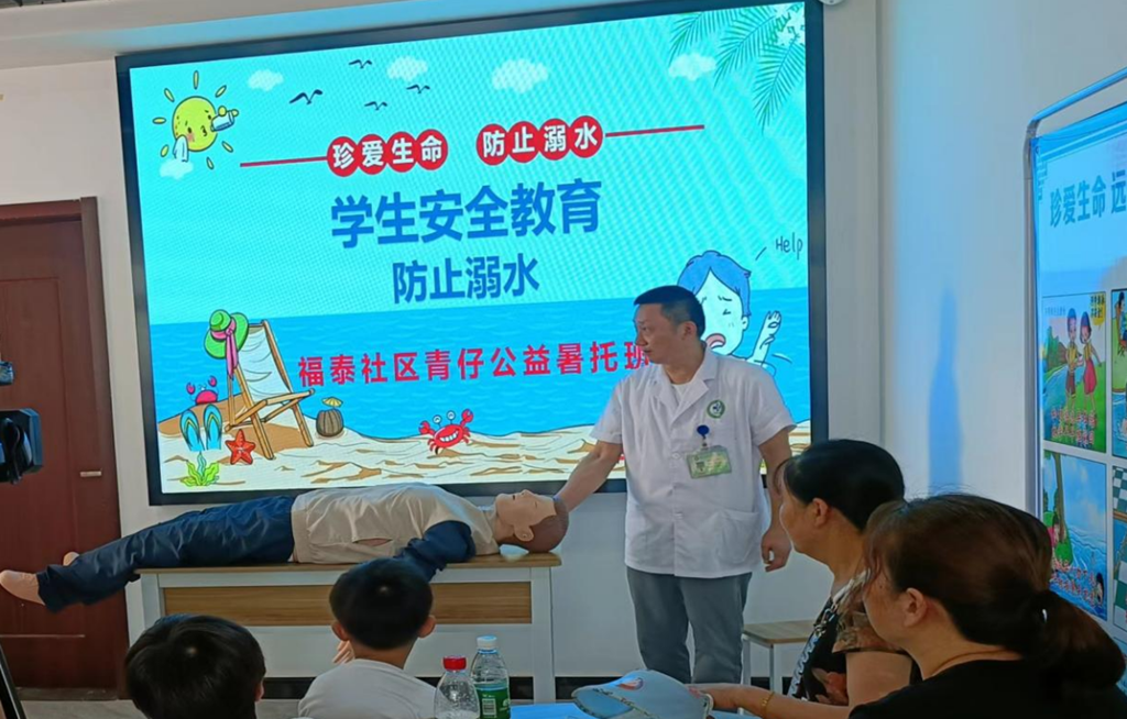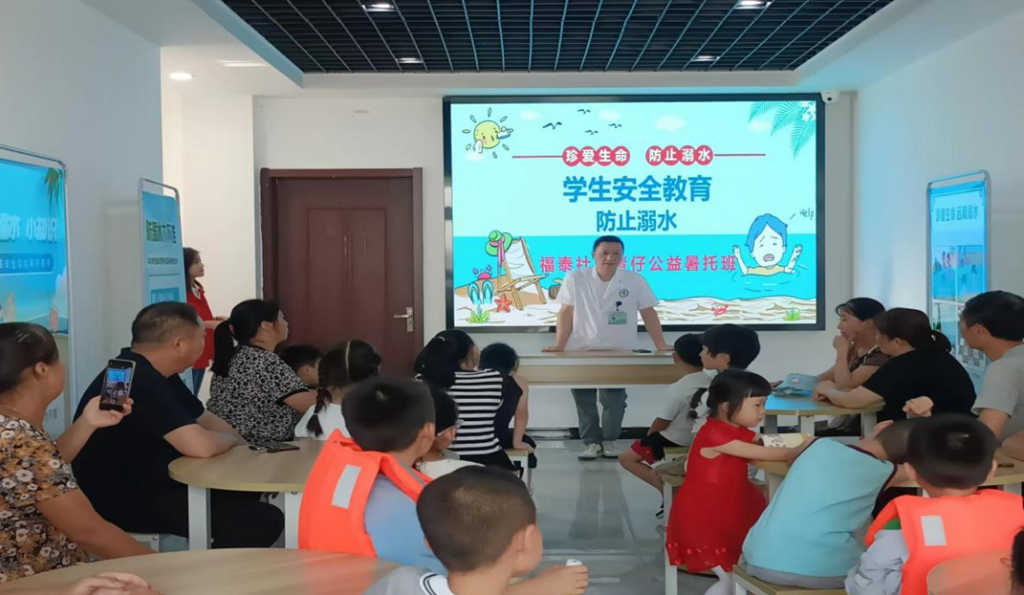每逢暑假,最令家长和老师关切的就是防溺水。滨江镇周边河流较多,儿童夏季溺水隐患较大,在滨江镇团委的精心组织下,一场防溺水安全课实景教学正在福泰社区暑托班里上演。