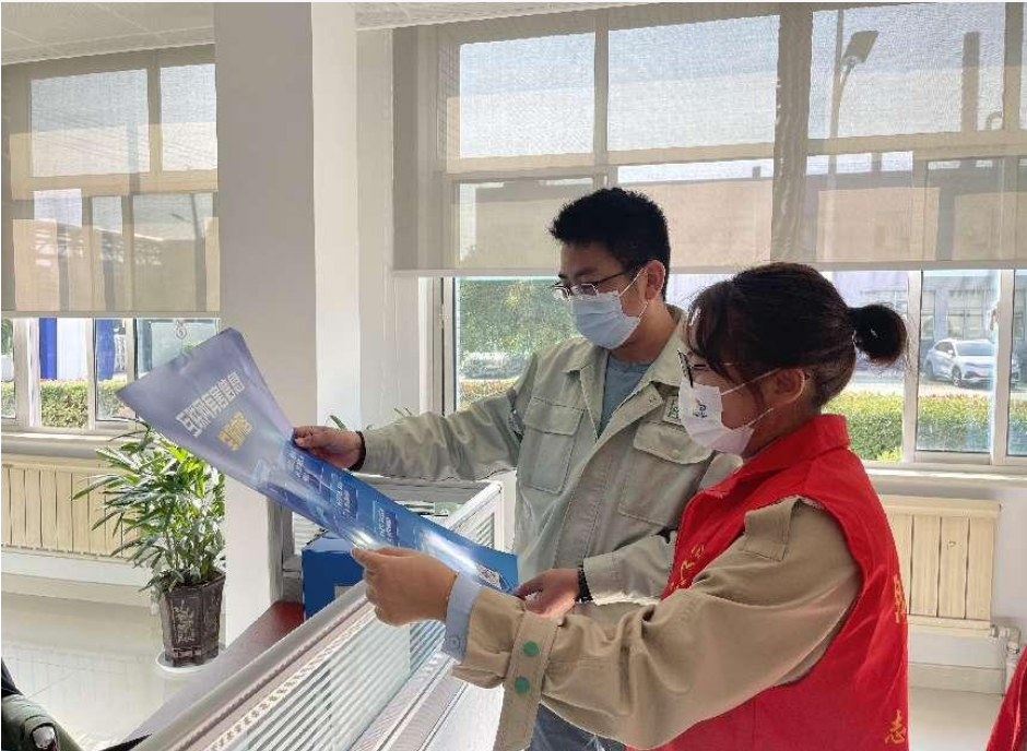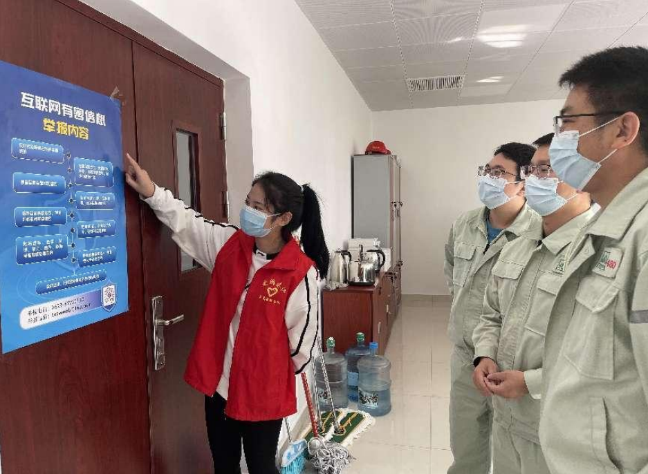 志愿者们走进泰州百力化学股份有限公司进行宣传,为了方便更多的员工了解网络举报工作,志愿者们向企业员工们讲解互联网违法和不良信息的危害,介绍了网络举报受理范围、受理方式和举报流程等知识,引导企业共同营造清朗的网络空间。
