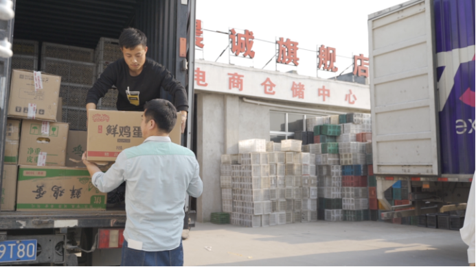 近日,在江苏省泰兴市分界镇鹏程禽蛋专业合作社,工人们正在忙着给各类蛋制品打包。电商服务站的产品直播间里,主播正在热情带货。鹏程禽蛋专业合作社理事长周鹏介绍,目前通过电商销售平台每天销售各类禽蛋60多万个,每月线上销售额达700多万元。靠着小小的手机屏幕,实现农产品和市场直接对接,减少中间环节,畅通农产品销售渠道,不仅保障供应,也让更多农产品漫步“云端”,飞向“大市场”。