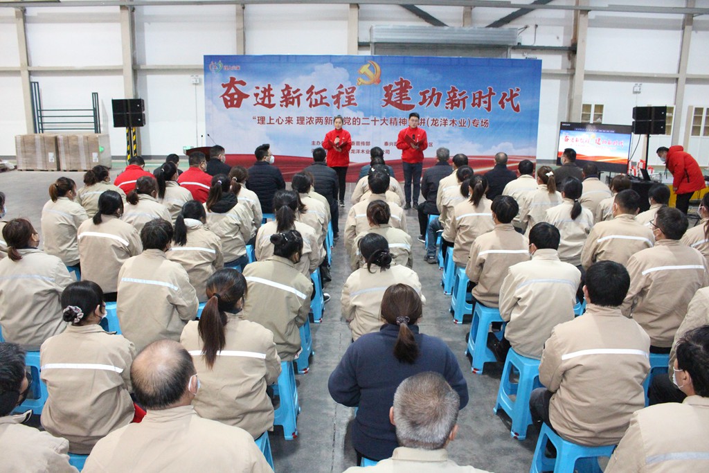 12月14日,市委宣传部、现代农业产业园区举办奋进新征程 建功新时代 —“理上心来 理浓两新 ”党的二十大精神宣讲(龙洋木业)专场活动,推动习近平新时代中国特色社会主义思想进企业入车间。