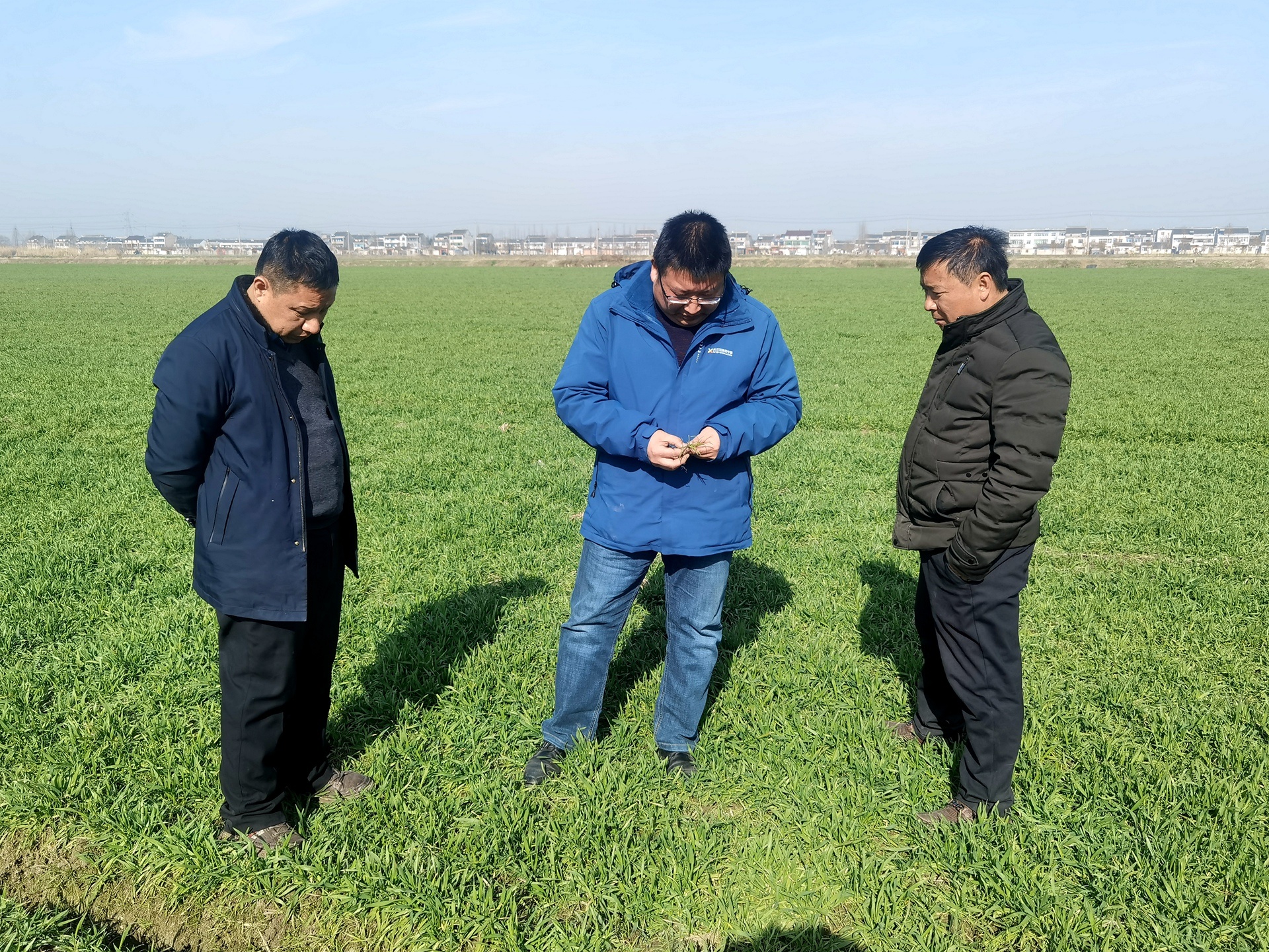 “田里的小麦,大部分已经到了分蘖期,要注意肥水管理、田间杂草及病虫害的防治。”2月2日,在江苏省泰兴市建浩家庭农场,农技专家和农资送货员走进田头,查看小麦田块除草情况,进行技术指导。随着气温升高,小麦、油菜等田间管理进入关键时期。