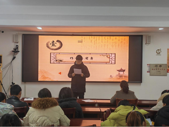 三省己之过,经典激斗志。“作为一名党员干部,是否时时处处真诚处世、以诚待人?是否时时处处热情服务、爱岗敬业?是否遵纪守法、坦荡无私?”随着主持人刘建成的提问,参会人员认真反躬自省。一曲《感恩的心》、一首《无题》,感染和激励参会者立足岗位甘于奉献,做一个爱国奋斗的有志青年。