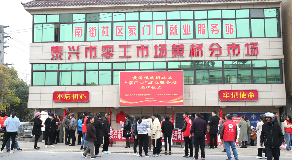 全市首家“家门口”就业服务站在黄桥革命老区揭牌 3月30日上午,泰兴市首家“家门口”就业服务站在黄桥镇南街社区举行揭牌仪式,这一天共有4家企业进站招聘,提供了38个工种400多个岗位,吸引了周边群众300余人前来求职选岗,黄桥镇并有劳动保障协理员充当就业政策的“宣传员”、就业岗位的“信息员”、就业援助的“服务员”,在现场提供了就业指导、劳动关系和政策咨询等服务。据泰兴市人社局副局长孙建民介绍:“今年泰兴市将切实打通就业服务‘最后一公里’,预计打造‘家门口’就业服务站6家,兜底帮扶不少于300名低收入人口、残疾人、特困职工家庭成员、零就业家庭成员、登记失业1年以上的长期失业人员等五类困难人员就业,实现收入有增长、上岗有补贴、权益有保障”。