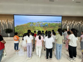 在城市形象馆,讲解员热情指引,悉心解说,带领孩子们依次对各个展项进行了参观。通过实景沙盘、全息影片和数字化触摸屏交互展示,泰兴的人文典故、悠久历史、物产特产、古典建筑、重点工程、交通发展等都生动形象地展示在孩子们的面前,使他们全面领略了泰兴的历史文化底蕴、山水人文特征、现代城市风采和未来发展蓝图。孩子们对馆里的展品充满了好奇心,“这个是什么啊,好漂亮啊”、“快快快,这里好壮观啊,能看到整个泰兴城哎”,孩子们你一言我一语的,激动坏了。 在生态环境教育体验中心,孩子们通过现场参观、互动骑行、挑战答题、VR体验等过程,学习到了固废危废、噪声污染、大气污染、水污染等多方面的环保知识,身临其境地感受到衣食住行与生态环境的密切联系。其中最受欢迎的环节是VR体验,孩子们纷纷争先恐后地戴上VR眼镜和耳机,并连连发出感叹,对VR眼镜中的世界惊奇不已。在VR的世界里,大家化身一条江豚,以江豚的第一视角,跟随一个小江豚成长的脚步,发现水下之美与环境之义。