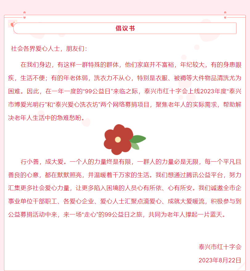 【99公益】泰兴市红十字会邀您“一块”做好事