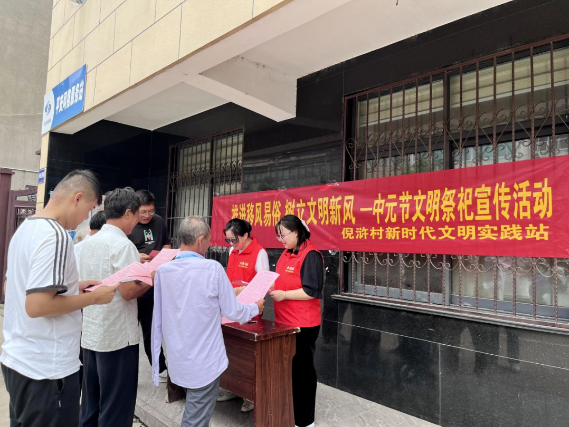 宋福村新时代文明实践站的志愿者们在村里各个路口发放文明祭祀宣传彩页,细心为村民讲解倡议书内容,呼吁村民文明祭祀、节俭祭祀,提倡大家以网上祭祀、鲜花祭祀、家庭集体追思等方式寄托哀思,不随意焚烧纸钱,以环保、文明的方式缅怀故人,赋予传统节日现代化理念。同时,志愿者尹爱萍“登门入户”宣传文明祭祀,村民们纷纷表示将从自身做起,从点滴小事做起,自觉摒弃陋习,倡导文明新风,以文明、环保、节约、低碳的方式缅怀逝者,共同营造“移风易俗、文明祭祀”的氛围。 移风易俗,全民参与