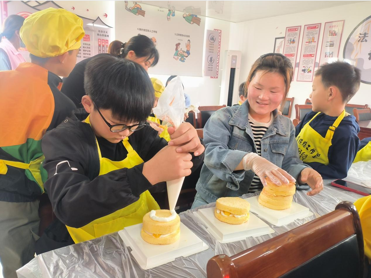 母亲,是世界最伟大的称呼;母爱,是世界最无私的情感。从小我们就在母爱的滋润下无忧的长大。为传承华夏美德——孝,演绎华夏灵魂——爱,让儿童从小学会感恩,学会用心灵关怀,5月12日,虹桥镇清水村儿童关爱之家、清水村妇联联合泰兴市未成年人关爱协会举办“有你相伴 幸福加‘焙’”母亲节亲子烘焙活动。 活动前,老师先带孩子们观看视频,了解母亲节的由来,引导孩子们表达出对妈妈的母亲节祝福,孩子们争相表达对妈妈的爱,希望妈妈健康,快乐,开心,工作顺利,妈妈们脸上都露出了开心的笑容。 随后,老师将干净的底盘和香喷喷的蛋糕胚发给孩子们,动物奶油装在小裱花袋里,孩子们化身小小烘焙师,和妈妈齐心协力,一层奶油一层水果一层蛋糕胚,依次叠加,最后再用巧克力碎、可可脆点缀蛋糕表面,一个美味好看的蛋糕就完成了。最后小朋友们把自己亲手烘焙的蛋糕放进包装礼盒,把这份爱的心意送给了妈妈。