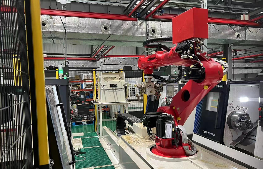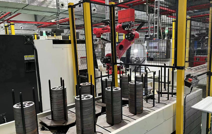 日前,在万基传动机器人关节用精密减速器生产线上,一台台行星架、摆线轮被传送到指定位置,红色机器人手臂敏捷旋转,精准定位,自动送到机床进行深加工,精确无误、快速高效。
