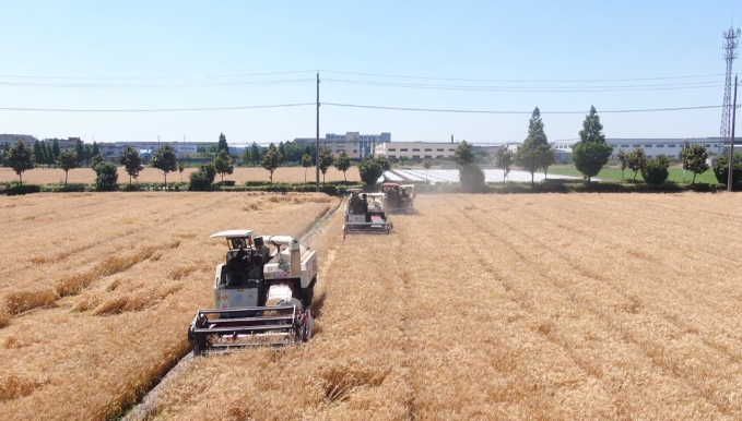 风吹麦田千层浪,又到一年收获时。眼下,泰兴市60.34万亩小麦小麦已进入收获期。广大农户利用晴好天气,全面展开机械化抢收,确保粮食颗粒归仓。 5月28日上午,在张桥镇桂芳家庭农场,3台联合收割机正在麦田里作业。大型旋耕拖拉机紧随其后,边耕边埋,让秸秆尽快翻入土壤,为秸秆高质量还田以及水稻高质量栽插打好基础。农场的3台收割机还被编入了“夏收农机突击队”,承担周边2000多亩小麦的抢收任务。 俗话说,小麦“九成熟,十成收,十成熟,一成丢”,可见收割时间需要精准把握。张桥镇今年在田小麦面积超过36000亩,按照先后成熟情况,提前组织农技人员深入田间地头,指导农民做好收获期田间管理工作。全镇共协调安排了52台大型联合收割机、25套烘干设备。 根据最新的农情调度显示,目前,泰兴市小麦大部分已经成熟,大规模机收已陆续开展。虹桥、滨江、张桥等西部乡镇,稻茬小麦全面开镰收割。截至目前,全市小麦收割面积约0.86万亩,占小麦面积1.42%。农业农村部门提醒,要密切关注天气情况,及时抢收。收割期若遇持续降雨,易发生小麦穗发芽,不利于小麦脱粒、晾晒和储存,要视天气情况提早抢收,做到成熟一片收割一片;同时全面开启粮食烘干及仓储设备,加大收储力度,以防麦穗发芽或霉变影响品质。 |