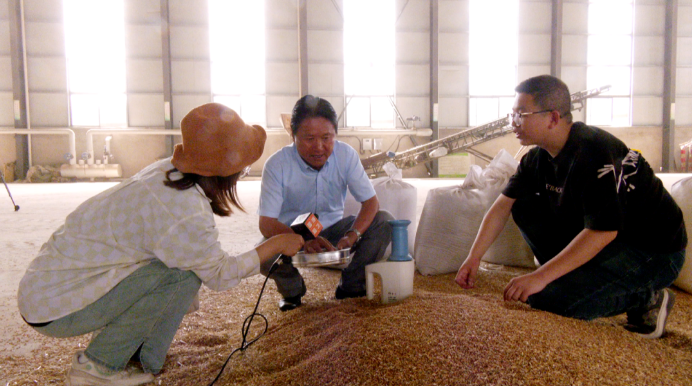 在泰兴市虹桥镇虹润家庭农场,业主郭桂军正在与镇上的农技人员共同查看新麦烘干情况。郭桂军所经营的虹润家庭农场小麦面积3500多亩,今年预计亩产900斤,总产量可达1800吨左右,每天可以烘干出成品小麦在350吨到360吨随着今夏小麦市场回暖,整体呈现稳中有升的趋势,郭桂军准确把握时机,提前与国库、地方库达成购销意向,因经销的小麦品质好、储量大,很受市场欢迎,每斤价格在一块三毛钱左右。