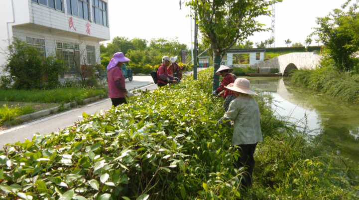 6月25日,在江苏泰兴虹桥镇三桥村毛家圩庄台,村民们正忙碌于绿化修剪和环境整治。毛家圩实施“增绿添彩”工程,与长江生态廊道景观区、四桥港风光带等交相辉映,形成了一道独特的大江风光样板。“现在这里的景色多好看啊,我们的生活环境越来越好了。”村民黄耀明兴奋地说。