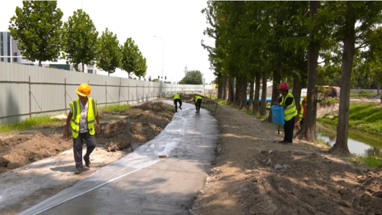 7月22日上午,在机电安装公司南侧、商井路北侧节点绿化项目现场,绿化栽植、园路透水混凝土浇筑、篮球场基础施工以及景观灯、垃圾桶安装已经完成。下一步,施工单位将进行园路面层涂料施工以及座凳安装,计划本月底建成。 为提升城市宜居品质,今年,泰兴市计划实施羽惠河西侧绿化(澄江路至同德路段)、东郊生态涵养区景观提升、植物园配套提升项目二期、阳江路南侧绿化(园林路至济川路段)绿化提升、镇海路西侧(根思路至龙河路段)绿化、商井河北侧(驾培路至拱极路段)绿化等13个城市绿化改造提升项目,贯通羌溪河15公里沿河步道,提升绿化总面积约32万平方米。