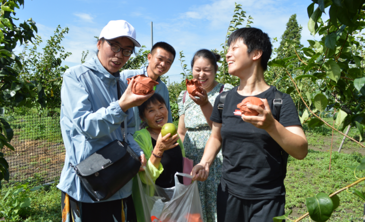 泰兴市新街镇乐呦家庭农场是两镇携手、温情助残的第一站。虽有台风侵扰,但在硕果累累的梨园里,高温酷暑的余威犹在。在农场技术人员的指导和志愿者陪护下,两镇残疾人兄弟姐妹兴高采烈地寻觅、挑选、采摘,满心欢喜地品尝着自己亲手采来的果实。泰兴市虹桥镇蒋华村党总支副书记张文学高兴地说,今天参加活动的大都是他们村的精神障碍患者,平时对于外面的世界几乎一无所知。这次活动让他们接触到了丰富多彩的大自然、感受到了劳动的快乐,更为重要的是,也让残疾人群体感受到了收获的喜悦和生活的美好。