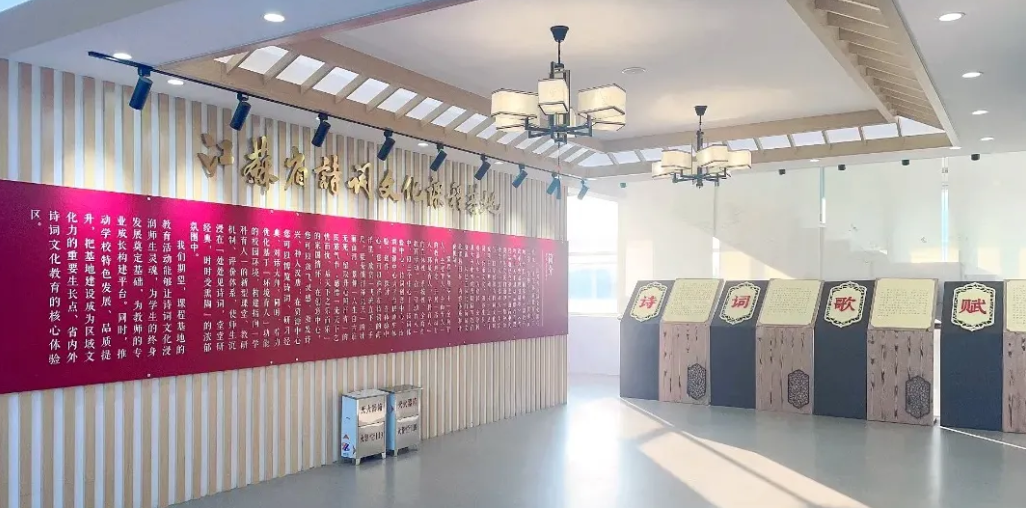 走进泰兴市第一高级中学的省诗词文化课程基地,随处可见诗词文化石、依景而设的诗词扇牌、曲径通幽的楹联长廊……处处洋溢着诗韵文化。 “江苏省诗词文化课程基地”座落于该校思贤楼。在诗词研究室,你可以博览诗词、对话大师、启迪心智;在诗词表演室,你可以研习经典、表演吟唱、神入汉唐;在诗词创作室,你可以放飞灵感、文思泉涌、写诗作赋…… 泰兴市一高诗词文化课程基地建设的成果,只是泰兴市整体推进学校课程建设的一个缩影。自2011年江苏省启动实施中小学课程基地建设项目以来,泰兴市高度重视,以课程基地的建设助力教育内涵发展,服务新时代教育实践,全面优化区域育人生态。