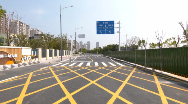 丹霞路西延位于香榭湖第二幼儿园门前,全长约229米,按城市支路标准建设。经过前期紧张施工,丹霞路西延已完成路面沥青摊铺、交通标线施划、标牌及路灯安装,开放了主线交通,施工人员正在进行北侧人行道扫尾施工。工程预计本月底全部完工。此外,位于襟江小学沐华校区西侧的人行桥已建成通行,方便了周边居民接送学生。