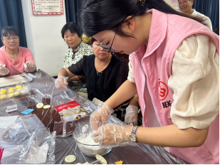 在丹桂飘香的季节里,中秋佳节的脚步渐渐临近。为了让辖区内的老年人度过一个欢乐、温馨的节日,滨江镇民政服务站围绕“夕福童享 爱润滨江”品牌活动,联合殷石村开展“花好月圆 情满中秋”主题活动。 活动伊始,舞台上,阿姨们身着华丽的戏服,以生动的表演、悠扬的唱腔一一呈现《英雄赞歌》、《百善孝为先》、《赶大车》等,让在场的每一位观众都沉浸其中。现场欢声笑语不断,手机快门声也此起彼伏,共同记录这一个个难忘的瞬间,殷石村也贴心地为失独老人、困难老人、孤寡老人等送上了米和油。 随后,工作人员为大家有序分发月饼制作材料,讲解冰皮月饼的制作方法。大家纷纷化身月饼师傅,和面、搓面团、压饼皮、包馅料、压成型,大家分工明确,相互配合,经过一个半小时的制作,桌子上的原材料变成了漂亮的冰皮月饼,整个制作过程中大家相互交流,相互借鉴,相互夸奖,现场一片祥和。月饼制作完成后,老人们开心地展示着自己的劳动成果,品尝着自己制作的月饼,乐在脸上,甜在嘴里,暖在心间。 本次活动的开展促进了邻里之间的沟通与理解,也展现了和谐、友爱、互助的良好风貌。未来,滨江镇民政服务站将继续秉承“夕福同享 爱润滨江”的理念,举办更多丰富多彩的活动,为老人们营造一个更加和谐美好的生活环境。 |