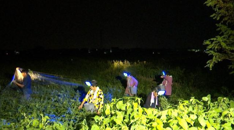 “白天温度高,豆丹躲在叶子下面不出来,晚上气温凉快些,豆丹会出来吃叶子,用紫外线灯照上去,它的身体就会发亮,抓起来很方便。”市泰连家庭农场负责人时良桂边采摘豆丹边向记者介绍,采摘的豆丹都要送到连云港那边的批发市场,现在价格是在21—25元每斤,春季的时候,豆虫的价格较高,在100元多每斤,对农场未来的发展还是很有信心的。