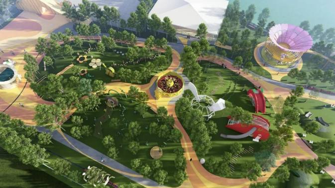 除了丰富的游乐设施,那兔乐园还特别注重营造温馨的家庭休闲氛围。在引流区,那兔营地咖啡、丛林餐厅、水上乐园、音乐沙滩等设施一应俱全,让家长们在陪伴孩子的同时,也能感受到主题乐园的独特魅力。 那兔乐园的地理位置十分优越,南侧紧邻同德路,向西与同德路潮玩运动公园相连,共同形成了以“动”为主的主题亲子游乐、年轻力潮玩运动区。这一布局不仅丰富了东郊森林公园的游玩体验,也进一步提升了泰兴市的文化旅游品质。