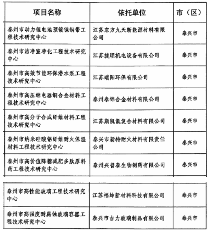 近日,泰州市科技局下达了2024年市级工程技术研究中心建设通知,泰兴市9家企业榜上有名。