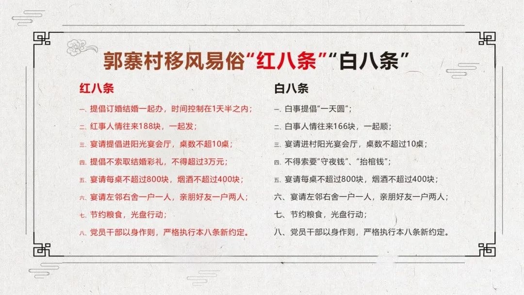 近日,泰兴市宣堡镇郭寨村在文明建设中取得了显著成效,村里的红白事随礼金额均不超过200元,这一变化得益于村民共同遵守的移风易俗“红八条”和“白八条”。其中,“红事人情往来188块,一起发”的规定尤为引人注目。 郭寨村为举办红白事专门设立了“阳光宴会厅”,2022年平均每月举办1至2场活动,年接待人次达到1500人。此举有效遏制了大操大办、铺张浪费等不良习俗,越来越多的村民选择在这里简办宴席,形成了丧事简办、喜事新办的文明风尚。 郭寨村的变化是泰兴市文明建设的一个缩影。上世纪八十年代初,泰兴县宣堡区委和宣堡公社党委就开始指导辖区内大队开展乡规民约大讨论,并最终提炼形成八条村规民约。这一传统在郭寨村得到了继承和发扬,2022年,全国首家村级村规民约实践基地在这里诞生。 如今,文明之花已经开遍泰兴。泰兴市广泛开展文明家庭评选活动,宣传好家风,提升群众践行文明的积极性。在公共场所,市民们自觉遵守交通规则,遛狗牵绳、文明养犬已成为习惯;餐厅内备有公筷,亲朋好友相聚时践行“光盘行动”,言行中尽显文明素养。 泰兴市注重文明公园的打造,提升群众的精神文化生活。2022年,“改造·提升”后的羌溪河滨公园面貌焕然一新,成为市民茶余饭后的好去处。此外,泰兴市见义勇为主题公园的落成也为市民提供了全新的宣传阵地,展示了近年来涌现出的见义勇为市民的感人事迹。 在背街小巷的打造上,泰兴市下足功夫。济川街道泰仪路围绕“礼仪”和“孝文化”两大主题进行打造,各类彩图面积达600多平米,成为一道亮丽的风景线。这些文明小巷的打造不仅美化了城市环境,更让文明理念深入人心。 未来,泰兴市将继续践行文明理念,让文明之花在这片土地上绽放得更加绚丽多彩,为共庆新中国75周年华诞献礼。 |