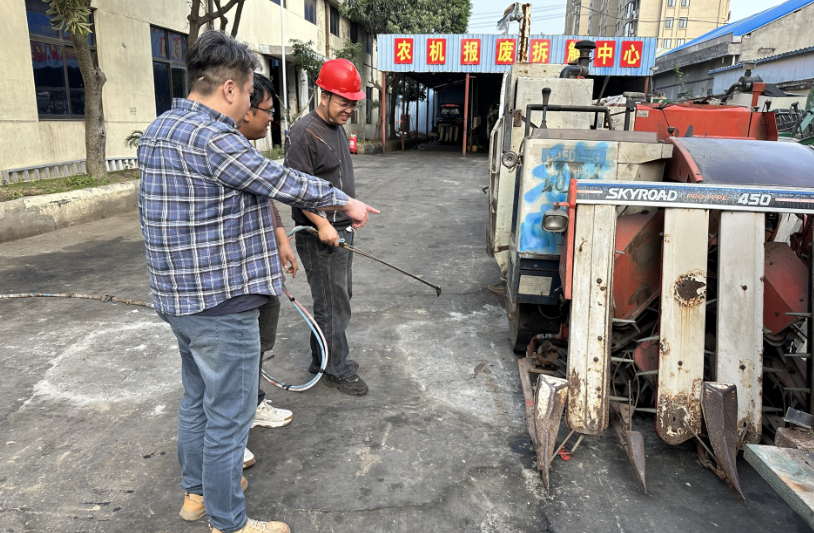 日前,在泰兴市汇丰农机有限公司废旧农机回收拆解点,拆解机、电焊机、叉车机械轮番运作,工作人员正对废旧农机进行拆解作业。种粮大户李星于2020年购买了一台中小型水稻收割设备,经长时间连续作业,多零件磨损严重,存在较大安全隐患,也达到了强制报废年限。“以前只好卖废铁,才3800多元,现在国家有农机报废更新补贴政策,可以补贴17500元,同时我今天购买了新的收割机,还多补贴8000元,购买的新机还享受农机购置补贴27000元,非常划算!”李星开心地说。