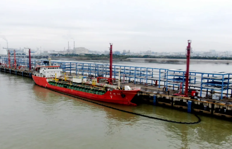 日前,化学品船“中拓16”轮停靠在金燕仓储液体化工码头,金江化学公司生产的1500吨丙烯酸丁酯经管道输送到船舱,以水运方式运送至下游客户。金燕仓储液体化工码头由港中延公司负责码头运营,主要从事醇类、酯类、烷烃类等货品的装卸经营业务,1到10月,码头吞吐量突破100万吨大关,和去年同期相比,增长了近40%。