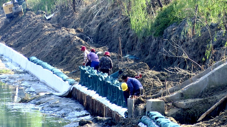 11月19日上午,在泰兴市滨江镇大何庄村马甸小流域综合治理项目现场,工人们正在灌装沙袋加固河道岸坡。据了解,此次整治的何庄中沟、农中河、大西中沟是滨江镇北区防汛抗旱、行洪排灌的关键河道。多年来,河道淤积、岸坡坍塌、行洪能力差,水面漂浮物难以清理。“今年,滨江镇积极争取资金,投入700多万元,计划通过河道整治、全线疏浚、格宾网箱+生态袋木桩护岸的方式,让小流域的水流活起来。”大何庄村党总支书记徐建伟表示。