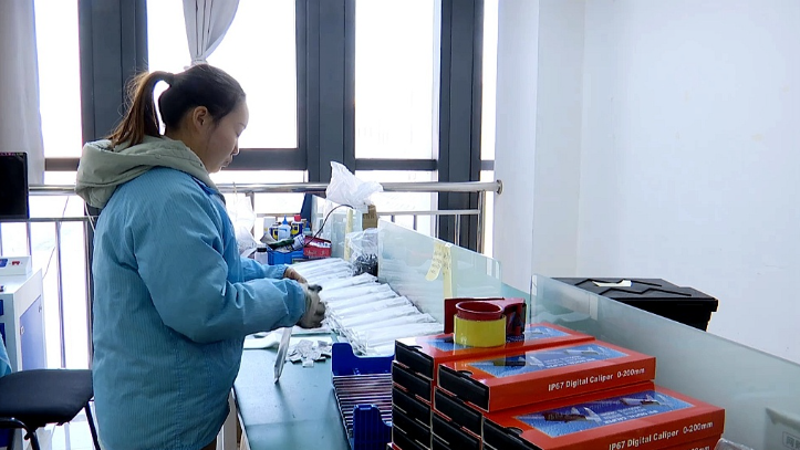 卡尺被誉为“工业的眼睛”,近年来,随着电子技术的快速发展,数显卡尺因其测量精确、读数便捷而在工业领域广泛应用。广联测量科技(泰兴)有限公司是一家专注于数显卡尺生产的企业,今年初加入泰兴市黄桥电商产业园后,整合多项创新技术打造数字化展厅,数字化展示产品,扩大了“朋友圈”,提升了“国际范”。“国内卡尺精度标准为±0.03毫米,我们的卡尺精度可达±0.02毫米,完全符合国际一线品牌的标准。目前,产品主要在淘宝、京东、拼多多等平台销售,年销量约1万只。”公司总经理朱其财表示。