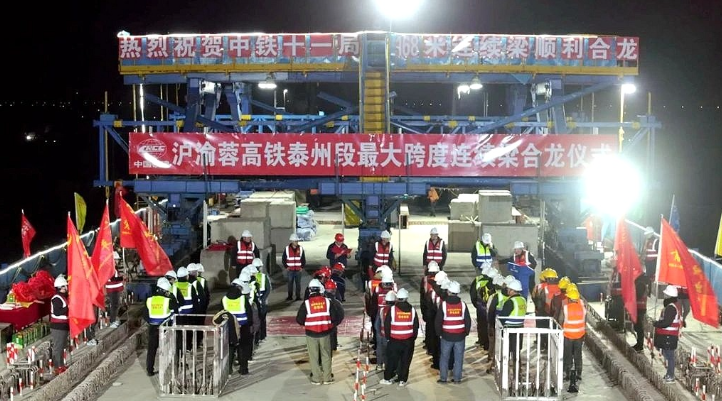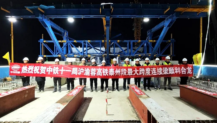 2024年12月10日,中铁十一局承建的沪渝蓉高铁(北沿江高铁)泰州段最大跨度连续梁在泰兴市成功合龙,这标志着项目施工取得了重大进展。