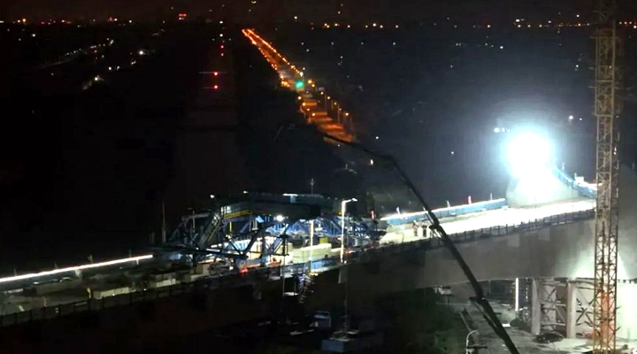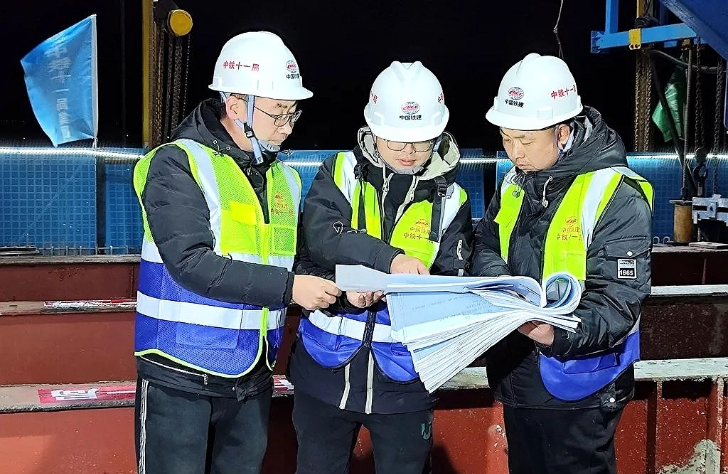 2024年12月9日晚10点58分,沪渝蓉高铁通泰扬特大桥跨越X355县道及如泰运河的连续梁开始了合龙作业。该连续梁全长344米,采用主跨168米的连续梁跨越既有航运通道和公路。由于施工周期长、安全风险高、环保要求严、交通压力大,该工程是项目中的关键控制性工程之一。