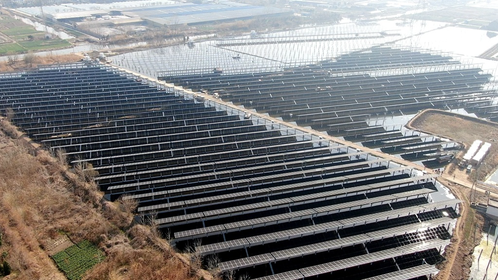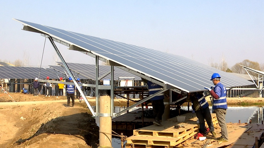 近日,在江苏省泰兴市曲霞镇朱圩村,润电智慧能源“渔光互补”光伏发电站项目正加快推进,每天铺设光伏板超过1000块,预计3月底完成铺设任务。该项目装机规模为10.5兆瓦,充分利用区域内太阳能资源和水面空间资源,将光伏发电和渔业养殖相结合,形成“水上发电、水下养殖”的复合产业模式,实现土地资源的高效利用。