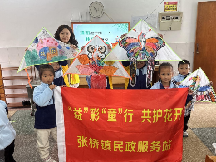 “益”彩“童”行话清明 共绘纸鸢护花开 ——张桥镇民政服务站开展清明节主题融合活动