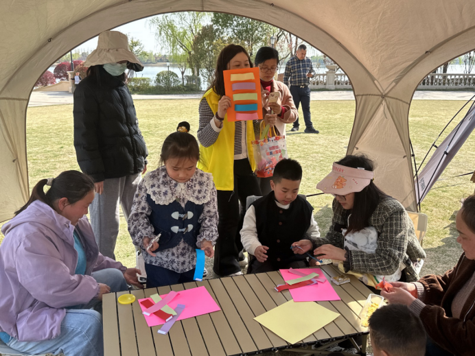 春风送暖,文脉流芳。4月3日下午,张桥镇民政服务站组织20余名儿童和家长走进香榭湖公园,开展“香榭湖畔寻古迹·张桥地名探文脉”文化探源活动。通过文化讲解和手工创作,让孩子们在湖光春色中触摸家乡历史。 孩子们来到湖畔草坪,民政服务站工作人员用孩子们听得懂的语言讲述张桥地名密码。10岁的婷婷托着下巴问:“为什么叫张桥镇呀?”“古代张姓人家在此架桥筑市,桥通人心,市聚烟火,这就是地名的温度。”孩子们望着波光粼粼的湖面,仿佛穿越回千年前的驿道,感受历史长河的流淌。 在手工创作环节,工作人员为大家分发彩色卡纸,引导孩子们将“桥”元素与心中张桥的景象巧妙结合,大家用稚嫩的小手粘贴出自己心目中的“小桥”。琳琳说:“我想象古代行人背着行囊从桥上走过,桥下有乌篷船,这就是张桥的故事。”小锋指着自己的彩虹桥:“张桥就像彩虹一样多彩!”每件作品都承载着孩子们对家乡的独特理解。家长们纷纷感慨:“孩子不仅记住了历史,更学会了用发现的眼睛看家乡!” 此次活动以湖为媒、以史育人,通过可触可感的文化体验,在孩子们心中播撒下热爱家乡、传承文脉的种子。未来,张桥镇民政服务站将持续探索“地名+教育”融合模式,让历史记忆成为滋养民心的精神甘露,让每个孩子都成为优秀传统文化的传承人。 |