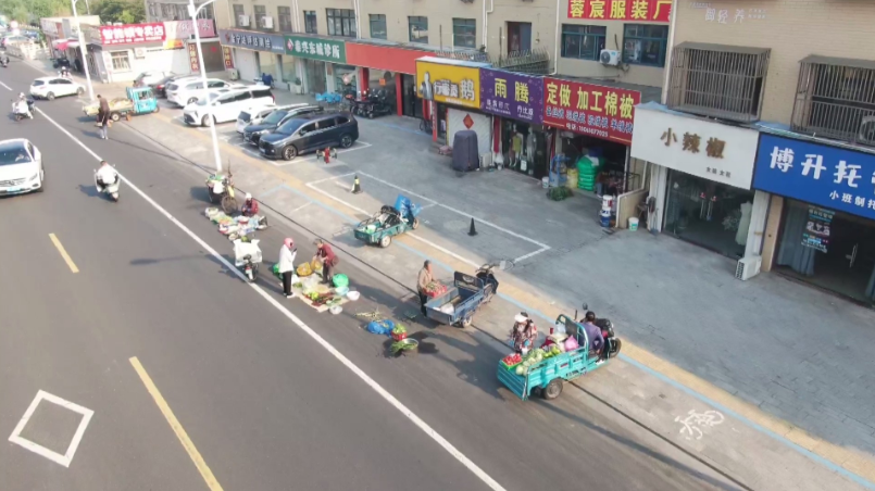 “我们这些老人家卖点自家种的菜,7点半准时收摊,不影响学生上学。”在曾涛路经营多年的摊主刘聪英说。该路段临近学校,过去占道经营问题突出,如今通过“错峰经营”,既保留了城市“烟火气”,又维护了市容秩序。姚王街道将文江印农贸市场开辟为自产自销区,采取“摊主自治+执法监督”模式,引导流动摊贩“安家落户”。执法队员张曹鑫表示:“柔性化管理既缓解交通压力,又保障了摊贩生计。”