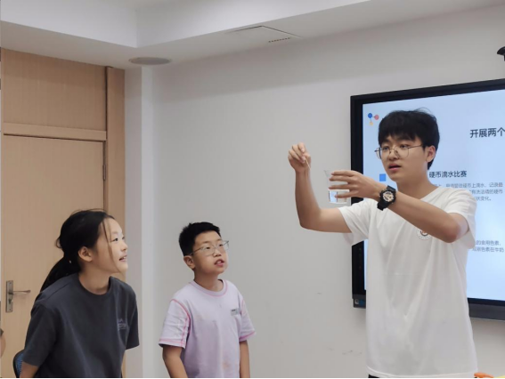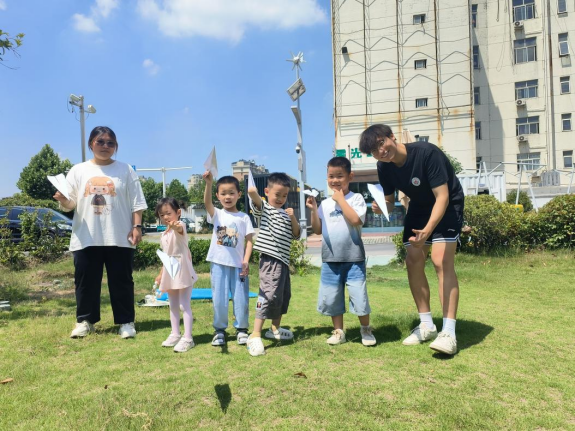 分区划点讲新知,户外运动绽活力 在当地政府和未成年人关爱协会的共同支持下,实践团于暑期赴泰兴市的济川街道北站社区、清水村、开绿村、腾兴村和星光公益咖吧以及常熟市的琴南社区、锦荷社区、府东村、昆承村开展支教。7月7日实践团成员们进行了开班仪式的宣讲,主要形式为团队的发展历程、开设课程以及队员介绍。 暂别教室的四四方方,去拥抱风的方向。最好的教室永远是户外,拥抱自然沐浴阳光不仅能放松心情,还能让心灵得到安抚。户外运动课上,各个点位的成员带着孩子们脚步踏过草地,指尖沾染上阳光的温度,呼吸间满是草木的清新,汗水滴落的声音与欢笑撞个满怀。每一次奔跑、跳跃、探索,都是身体与自然的对话,是勇气和成长的证明。