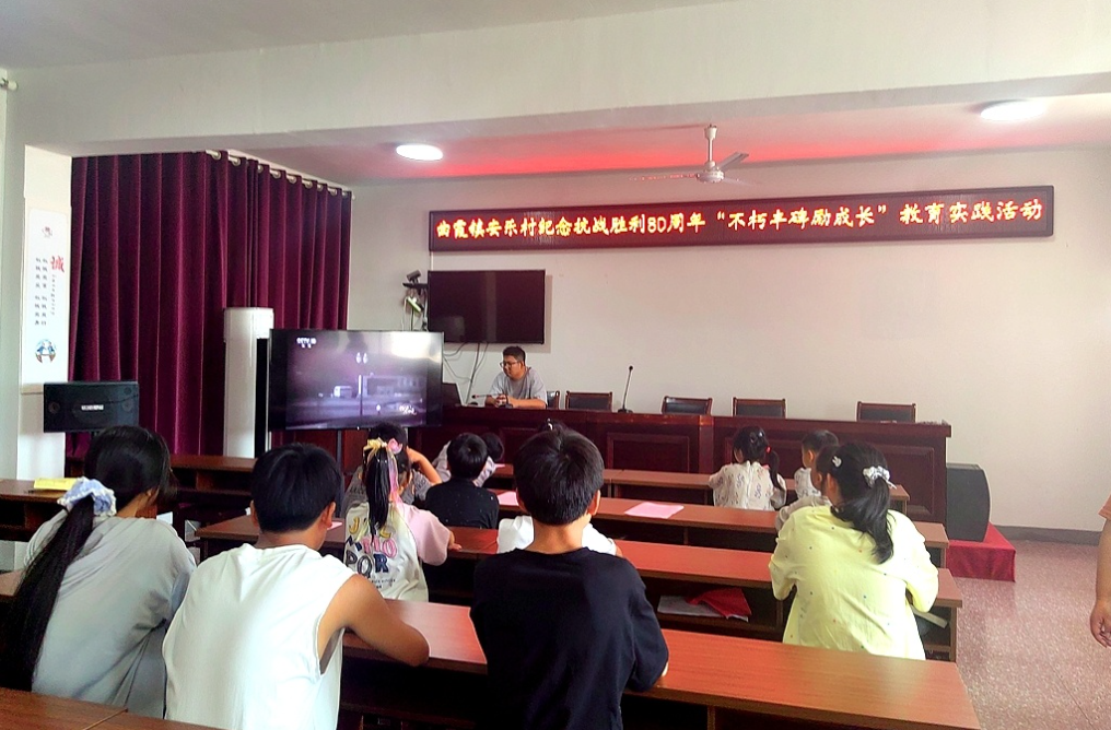 红色教育励成长。7月28日,安乐村开展纪念抗战胜利80周年主题活动,宣讲员通过讲述历史与互动问答,为孩子们带来一堂生动的爱国主义教育课。看着电子屏播放纪录片《九一八·这一天》,孩子们神情凝重,仿佛被历史重锤敲击。