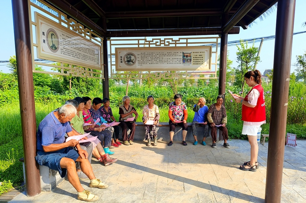 凉亭清风拂民心。夏日农闲,镇村干部利用村民纳凉时段拉家常、讲政策,宣讲的同时帮群众解决实际问题。7月25日傍晚,曲霞村清风广场的凉亭里,身穿红马甲的社保专员用方言解读江苏2025年退休人员基本养老金调整方案。“既能乘凉,又能听懂国家政策,讲的都是社保、建房这些我们关心的事!”村民张大爷点赞道。 “理论宣讲不能‘高空作业’,我们将扩充‘百姓名嘴’队伍,把讲台搬到田间地头、村口广场,让党的创新理论成为群众致富路上的‘金钥匙’、乡村振兴的‘加油站’。”周奕欣表示。 |