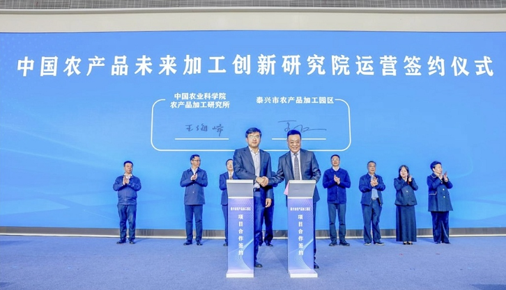 搭建高能级平台,加速成果转化落地 为系统性打通技术研发到产业应用的“最后一公里”,2023年,泰兴市与中国农科院农产品加工研究所携手共建“中国农产品未来加工创新研究院”,预计今年下半年正式投入运营。该研究院作为服务泰州重点产业链的关键载体,规划建设6个专业实验室、4个中试车间、3个公共平台、1个转化基地和1个院士工作站。“我们的核心任务是推动农副食品深加工与生物技术、信息技术、工程化技术深度融合,构建一个开放共享的公共技术服务平台,加速前沿成果在泰兴乃至长三角地区的转化应用。”中国农科院农产品加工研究所果蔬加工智造与营养健康创新团队首席研究员毕金峰表示。