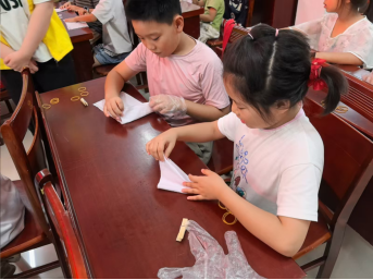 夏末的阳光仍带着盛夏的热情,正如滨江镇双彭村校外辅导站的孩子们眼里的光芒——那是跃动的创造力,是探索的好奇心,更是对成长的期待。近日,滨江镇民政服务站紧扣"‘滨’纷童年 ‘未’爱同行"品牌理念,联合双彭村为辖区儿童开展了一场沉浸式的创意扎染体验课,让孩子们在布料与染料的碰撞中触摸传统工艺的温度。 "小朋友们知道吗?扎染是我国非物质文化遗产,一块白布通过折叠、捆扎、染色,就能变成独一无二的艺术品!"活动室内,志愿者手持一幅蓝白相间的扎染方巾,用生动的故事和精美的图片,将孩子们带入了一个色彩斑斓的传统工艺世界。孩子们早已按捺不住,纷纷领取棉布、橡皮筋和环保染料,开启了自己的"创作之旅":有的小心翼翼地把布料折成规整的三角形,一层层缠绕橡皮筋,像在编织一个秘密;有的则天马行空,将布料揉成不规则的球形,还调皮地说:"我要染出彩虹一样的花纹!" 当孩子们把扎好的布料浸入五颜六色的染料桶时,教室里瞬间热闹起来。"我的是蓝色!""我要再加一点紫色!"大家一边期待着色彩的渗透,一边小声讨论着可能的图案。等待的过程充满惊喜——约莫二十分钟后,孩子们迫不及待地解开橡皮筋,缓缓展开布料。"哇!这是大海的波浪吗?"一片蓝白相间的流动纹路,像夏日海风轻拂过水面;"我的像一朵花!"层层晕染的紫与粉,宛如绽放的夏日繁花;还有抽象的几何纹、不规则的色块碰撞……每一块布料都是独一无二的"限量款"。孩子们举着作品互相展示,小脸上写满了自豪:"我教妈妈也做一条!""下次我要试试红色和黄色!" 这场扎染体验,不仅让孩子们触摸到了非遗技艺的温度,更在动手实践中培养了耐心与创造力。正如一位家长后来感慨:"孩子回家后一直念叨'我的扎染作品',还说要给奶奶也染一块手帕——这才是真正的文化传承。活动结束时,孩子们的手中不仅捧着各自的扎染作品,更捧着对传统文化的新奇与热爱。那些蓝白交织的纹路,不仅是色彩的碰撞,更是童心与传统的一次对话。未来,滨江镇民政服务站将继续以"滨纷童年 未爱同行"为引领,开展更多寓教于乐的非遗体验活动,让孩子们在玩中学、在学中悟,让传统文化的种子在幼小的心灵里生根发芽 |