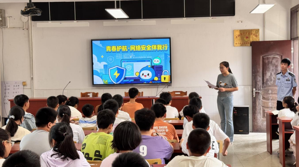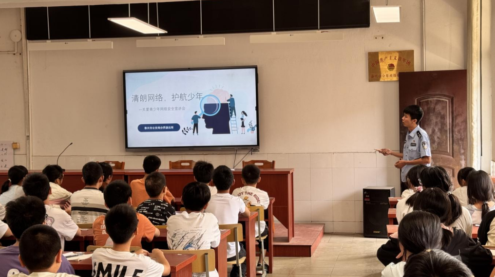 活动伊始,在学校会议室内,分界初级中学初一年级同学们集中观看了《网安法的这些要点你get了吗》网络安全科普教育视频。10分钟的视频以生动形象的画面、通俗易懂的语言,围绕《网络安全法》中与青少年学习生活密切相关的内容展开讲解,从个人信息保护到网络行为规范,全方位普及网络安全法律常识,帮助同学们快速建立网络安全基础认知,为后续活动开展奠定良好基础。 视频观看结束后,分界镇派出所民警张轩警官带来了主题为《青少年网络犯罪预防与自我保护》的专题讲座。讲座中,民警结合近年来发生的真实案例,深入剖析了青少年在网络环境中可能面临的网络诈骗、网络欺凌、个人信息泄露等常见风险,详细解读了各类网络违法违规行为的法律后果,让同学们深刻认识到网络安全的重要性。同时,民警还针对不同风险场景,手把手传授实用的应对方法与自我保护技巧,引导同学们在遇到网络安全问题时,学会运用法律武器维护自身合法权益,现场互动频繁,学习氛围浓厚。