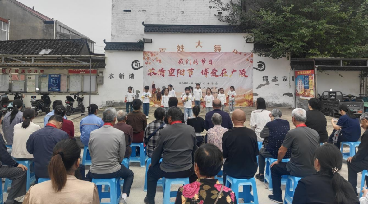 重阳节来临之际,广陵镇宣传科联合泰兴市红十字会、镇中心幼儿园、镇卫生院、新联会、镇区部分企业等多部门多单位,共同开展了一场的重阳节表演慰问活动,为镇内老年人送去节日祝福与关怀,弘扬尊老敬老的传统美德。