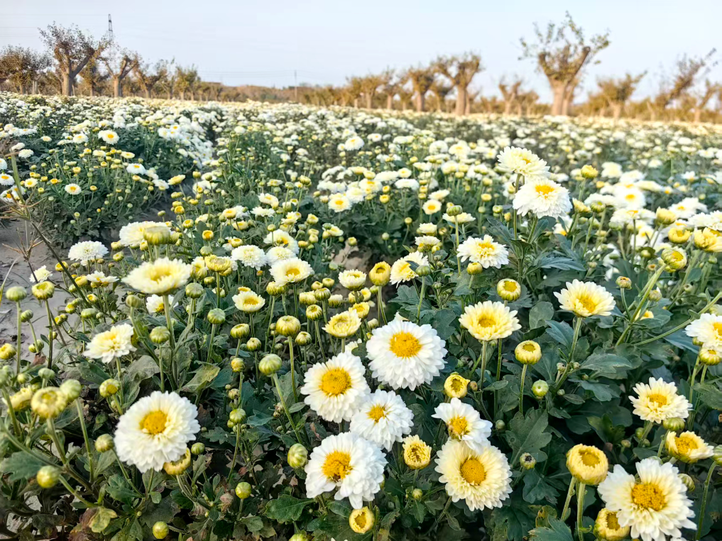 当前,联新村百亩泡茶专用千层菊正迎来丰收季,小雏菊、杭白菊、桃菊等品种也即将进入盛花期。村民们穿梭于花海间采收菊花,一派繁忙景象。近年来,当地种植户创新思路,尝试在银杏林下套种菊花,探索出“银杏+菊花”的立体农业新模式。 “菊花收了之后,我们会把它的其他部分粉碎,用于改良土壤、作为肥料,这对银杏树有一定帮助。同时,银杏树树叶有一定杀虫作用,能帮助菊花杀掉表面的虫子。现在正是菊花的开花期,今年长势很好,预计半个月之后进行烘干、包装、上市。”宣堡镇联新村工作人员封洪伟介绍道。