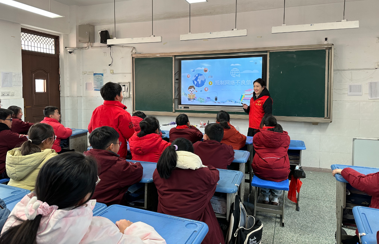 护航青春,网络安全“童成长” 为守护青少年清朗网络空间,泰兴市黄桥镇南街社区走进黄桥小学教育集团新城分校开展网络安全“护苗行动”,通过与学生面对面交流互动,筑牢未成年人网络“安全盾”。活动围绕抵制网络不良信息、网络安全防护、个人信息保护等内容展开。社区志愿者结合青少年日常用网场景,通过典型案例剖析、互动问答、情景讲解等形式,向学生们讲解网络陷阱识别技巧、个人信息保护要点等。现场还结合《全国青少年网络文明公约》,引导学生树立文明用网、安全用网意识,自觉抵制网络不良风气,全面提升网络素养。