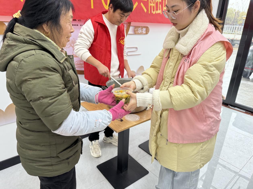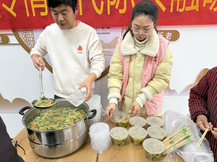 温情粥香四溢,共享节日氛围。“品·温情粥香——共享腊八粥体验”环节,现场备好了以糯米、薏米等谷物为基础,搭配腊肉丁、香菇、青菜、花生、莲子等食材熬制而成的咸香腊八粥,热气腾腾、咸鲜暖胃。老人围坐一桌,共同品尝这温暖的美食。过程中,工作人员引导参与者描述粥的口感、回忆与腊八相关的生活故事。大家一边喝着粥,一边分享着自己的经历,在美食与叙事的交融中,深刻体会到“一粥一饭,皆是温情”的节日氛围,每一口粥都仿佛是对传统节日的致敬,每一句话语都传递着浓浓的温情。