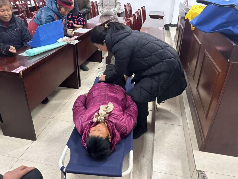兼顾健康与温情,多维服务传递满满关爱。除了专业的照护技能培训,活动还设置了贴心的医护服务环节。医护人员围绕老年群体高发的关节疼痛、睡眠障碍、高血压、糖尿病等健康问题开展科普宣讲,用通俗易懂的语言讲解疾病预防、日常养护知识,并现场发放健康宣传手册。针对老人们提出的用药咨询、康复护理等疑问,医护人员逐一细致解答,提供个性化健康指导。对于现场排查出身体状况较差的老人,医护人员认真做好信息记录,详细告知家属注意事项,提醒及时就医检查,形成“培训+义诊+健康追踪”的闭环服务模式,让健康关怀不留死角。