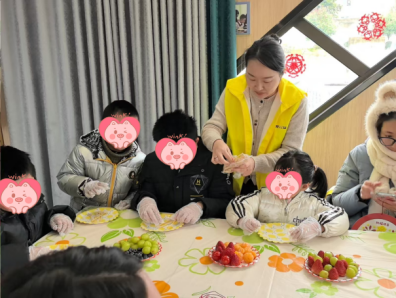 星光公益咖吧提前布置得温馨雅致,毛球、福字模板、新鲜水果、冰糖等活动材料整齐摆放、一应俱全,让大家在动手实践中缓解压力、增进情谊,感受新年喜庆与民俗魅力。福字毛球画制作现场暖意融融,志愿者耐心讲解粘贴技巧、构图搭配,手把手指导大家操作。在指引下,大家兴致勃勃投入创作,小心翼翼选取毛球粘贴,相互交流创意、调整细节,一颗颗鲜亮毛球在巧手下拼凑成饱满喜庆的“福”字,每一笔都饱含新年期许,现场欢声笑语不断,大家在创作中感受集体温暖。