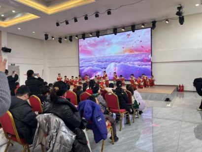 室内文艺演出中,未成年人成为绝对主角,三个篇章的节目尽显童真风采与青春活力。第一篇章“春蕾初绽・童趣飞扬”里,幼儿园小朋友带来的开场舞《福娃闹新春》萌态十足,瞬间点燃现场气氛;小学师生的童声合唱《经典诗词串烧》或《上春山》婉转悠扬,传递经典文化魅力;班级情景朗诵紧扣成长主题,表达对美好生活的向往。第二篇章中,小学编排的情景剧《爷爷的新手机》以生动剧情展现新时代青少年对长辈的关爱,传递孝老爱亲美德。整场演出还融入了机关年轻干部的传统艺术秀、基层民兵的励志歌曲联唱等节目,为孩子们树立了积极向上的榜样,最后全场共同唱响《歌唱祖国》,爱国情怀在歌声中深深扎根。