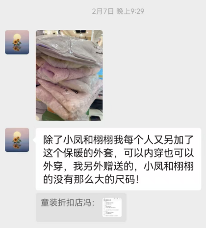 这份温暖并未止步于“微心愿”的实现。泰兴市moon品牌童装折扣店主动加码,为孩子们额外添置了保暖鞋、棉马甲等实用衣物,让原本的心愿礼物更显丰厚,让寒冬里的守护更有力度,让这份关怀从“满足需求”升级为“细致呵护”。