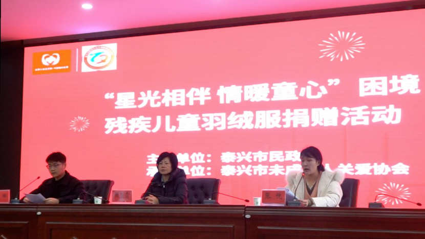 在这个寒冷的冬日,泰兴市滨江镇社区服务中心却洋溢着阵阵暖意。由泰兴市民政局主办,泰兴市未成年人关爱协会、滨江、河失、张桥镇民政服务站承办的“星光相伴 情暖童心”困境残疾儿童羽绒服捐赠活动在这里温暖启动。活动旨在为泰兴市滨江镇、张桥镇、河失镇三地的50名困境残疾儿童送去冬日温暖与关怀。